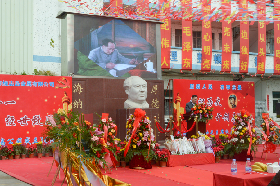 Lvzhidao industry was founded by Mr. Zhu zusheng in 2001. After years of development and struggle, the company's products include solder bar, solder wire, solder paste, cleaning agent, antirust agent, lubricating oil, etc. Under the guidance of Chairman Mao's belief, the development of lvzhidao industry has made rapid progress and developed steadily with the gratitude of "never forget to dig well". In order to consolidate Chairman Mao's thought as the core of Lvzhi island's belief, Lvzhi Island welcomed Chairman Mao's Mount Tai stone statue from Mount Tai on December 25, 2012 and established it inside the company. Since then, Lvzhi island has gathered many followers who identify with Chairman Mao on December 26 every year to commemorate the great leader Chairman Mao in Lvzhi island.
