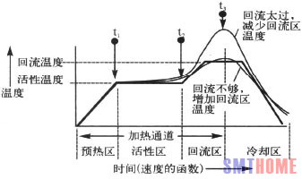 焊錫膏回流過程,焊錫膏在回流爐加熱的環(huán)境中,焊錫膏的回流分為四個(gè)階段: